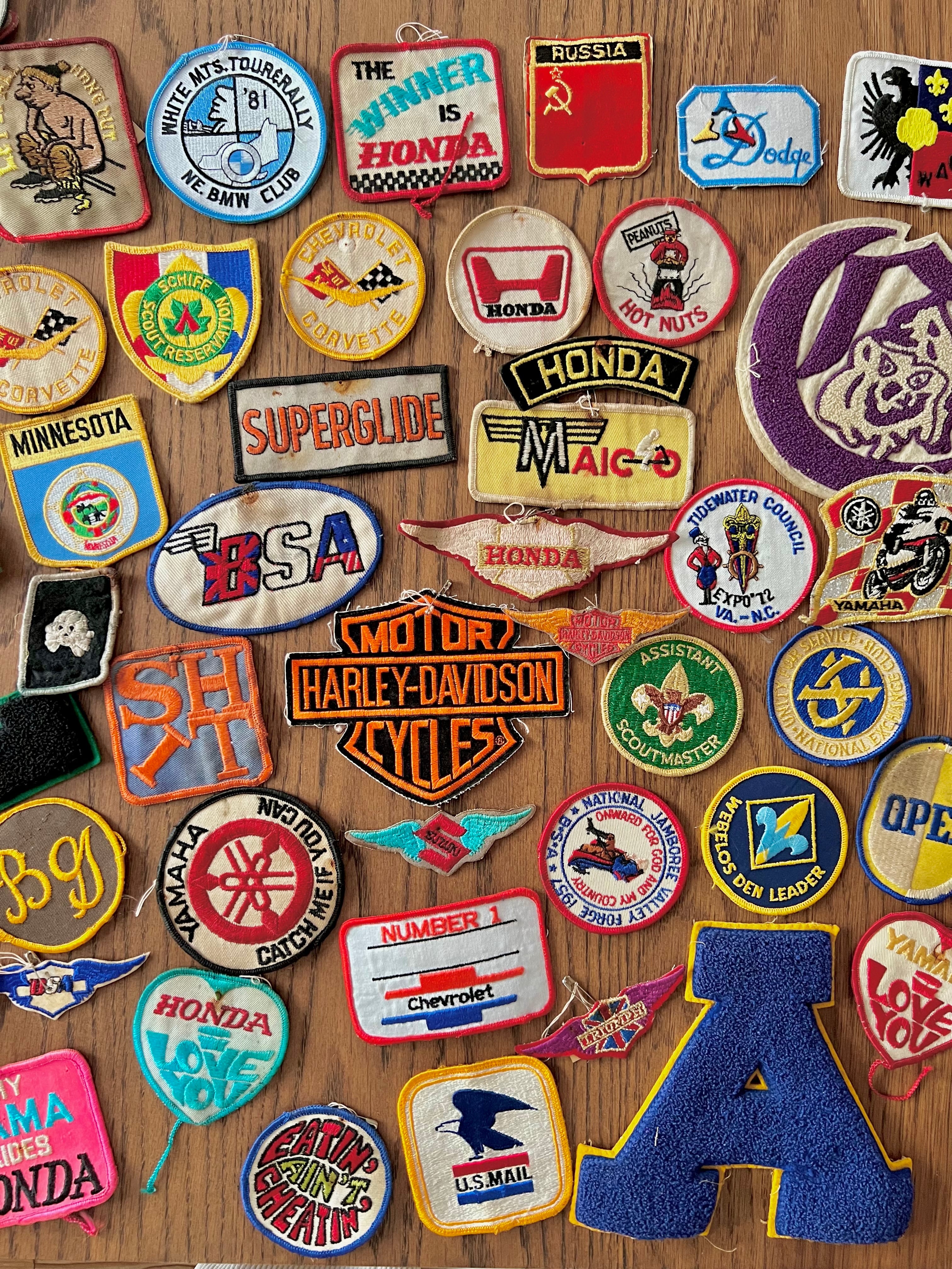 1960s Champion × Harley Davidson Cotton Jacket Size Large 肩幅48cm 身幅60cm 袖丈60cm 着丈62cm Condition 全体的に使用感が有り、生成り部分が変色しています。 破け等のダメージは御座いません。 チェッカーフラッグにレース車輌(バイク)のプリントが右胸に有り、背中にはチームのネームと地名のプリントが有ります。 Championのランナーズタグのコットンボディにコットンリブです。 気になる箇所が御座いましたら、お問い合わせ願います。