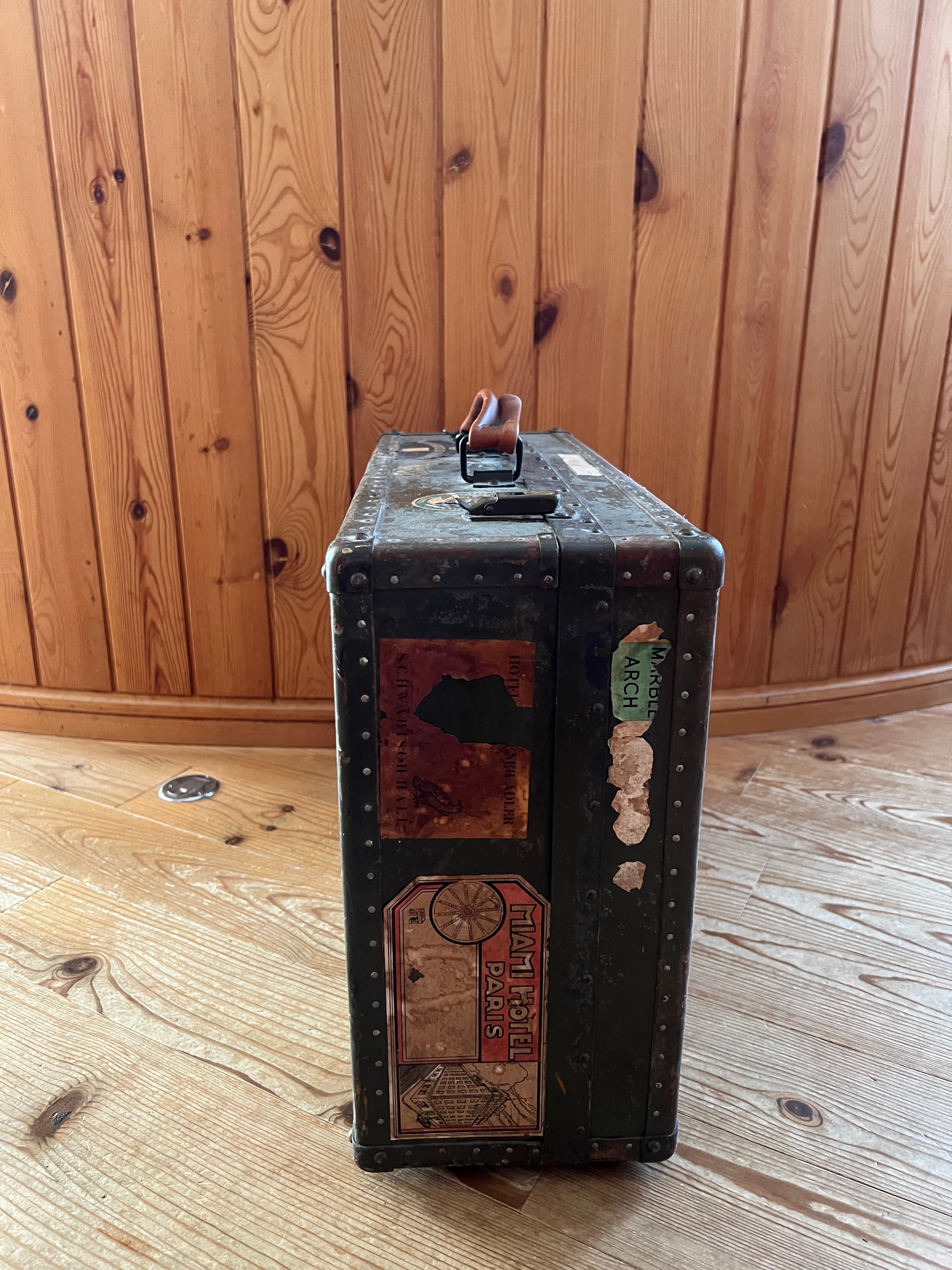 US.Navyの文字が辛うじて判別出来るステッカーが残る、小振りなサイズのトランクケースです。